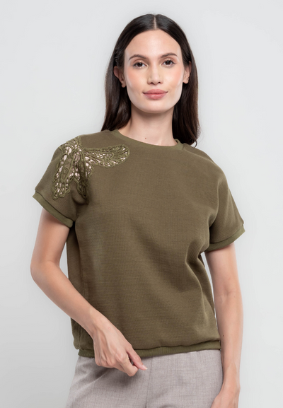 Celestine Dolman Sleeve Top with Abstract Buckle Belt