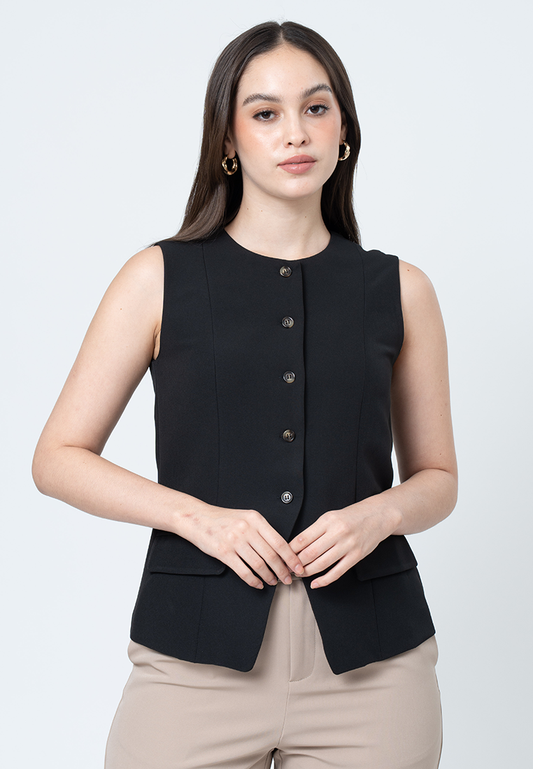 Amara Sleeveless Vest Top with Pocket Flap Details - BLACK
