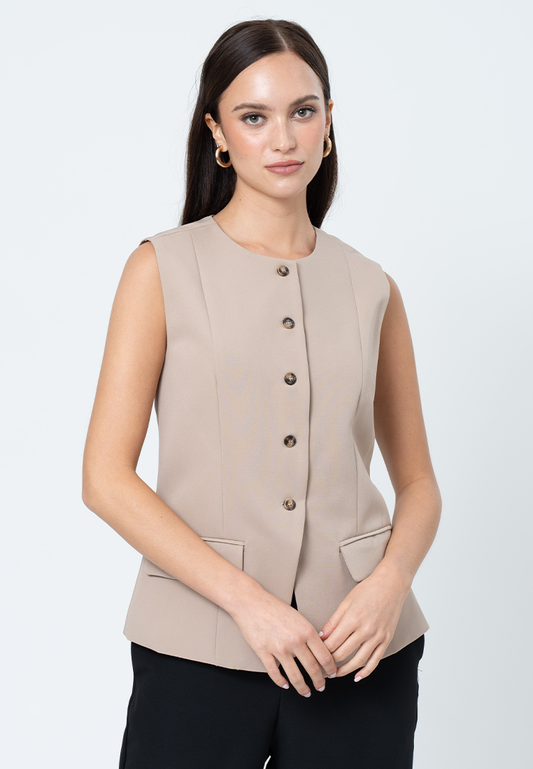 Amara Sleeveless Vest Top with Pocket Flap Details - WARM BROWN