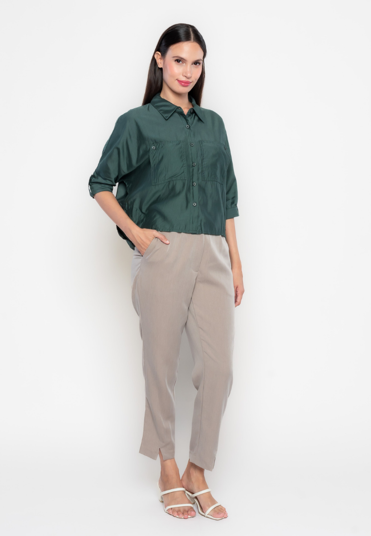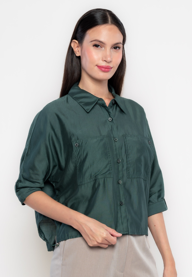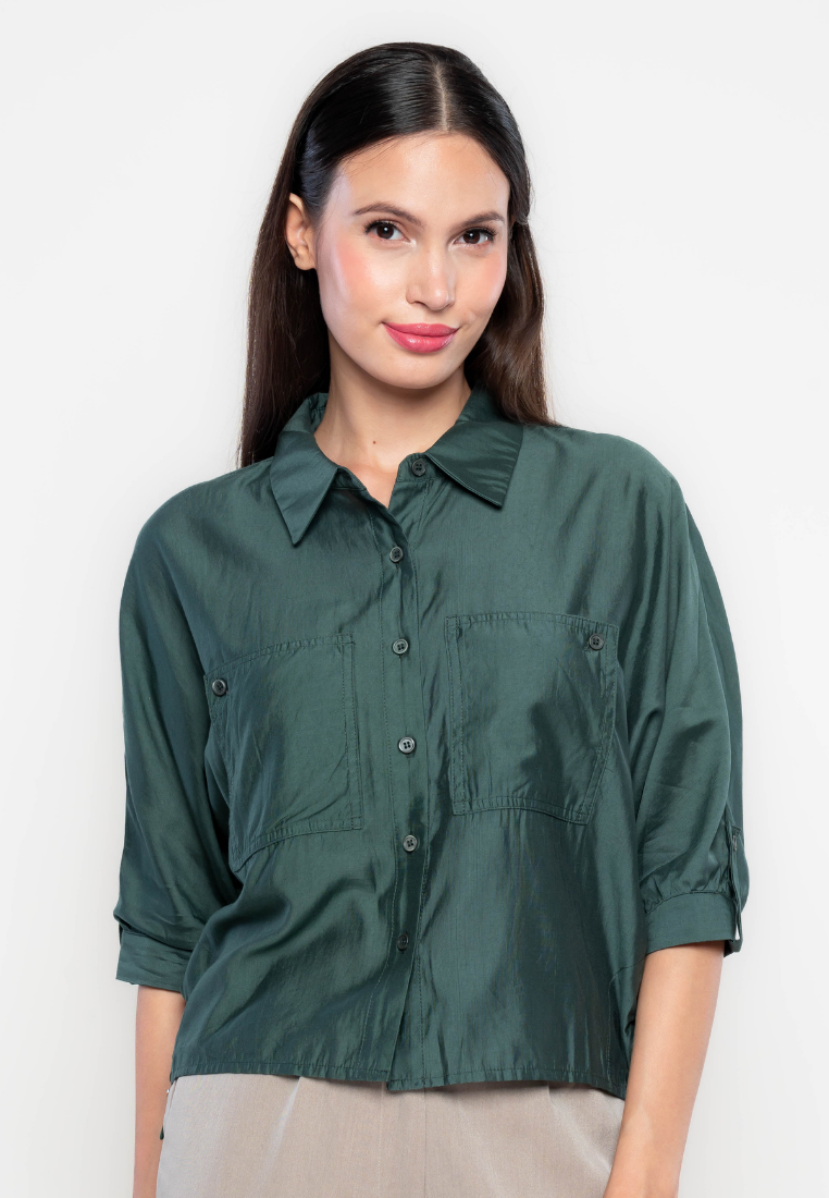 Apple & Eve Audreanne Collared 3/4" Top with Pocket Details