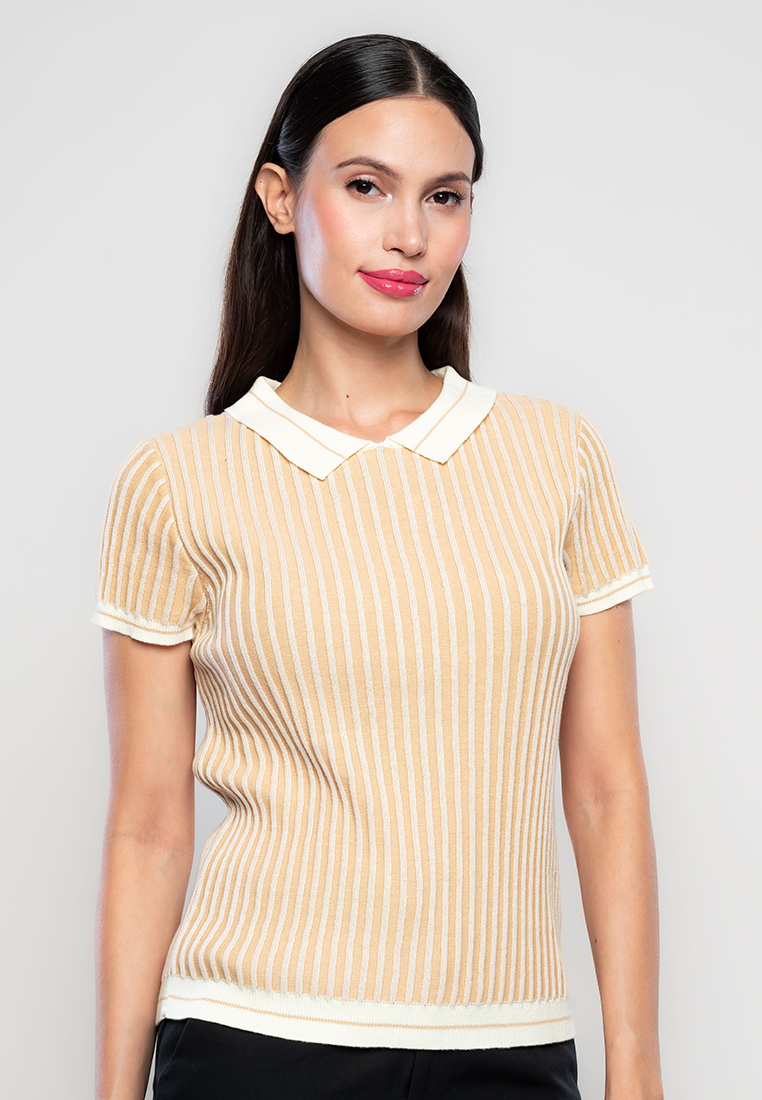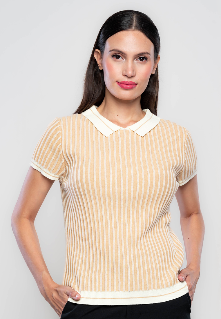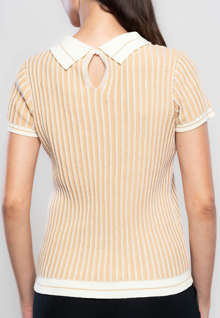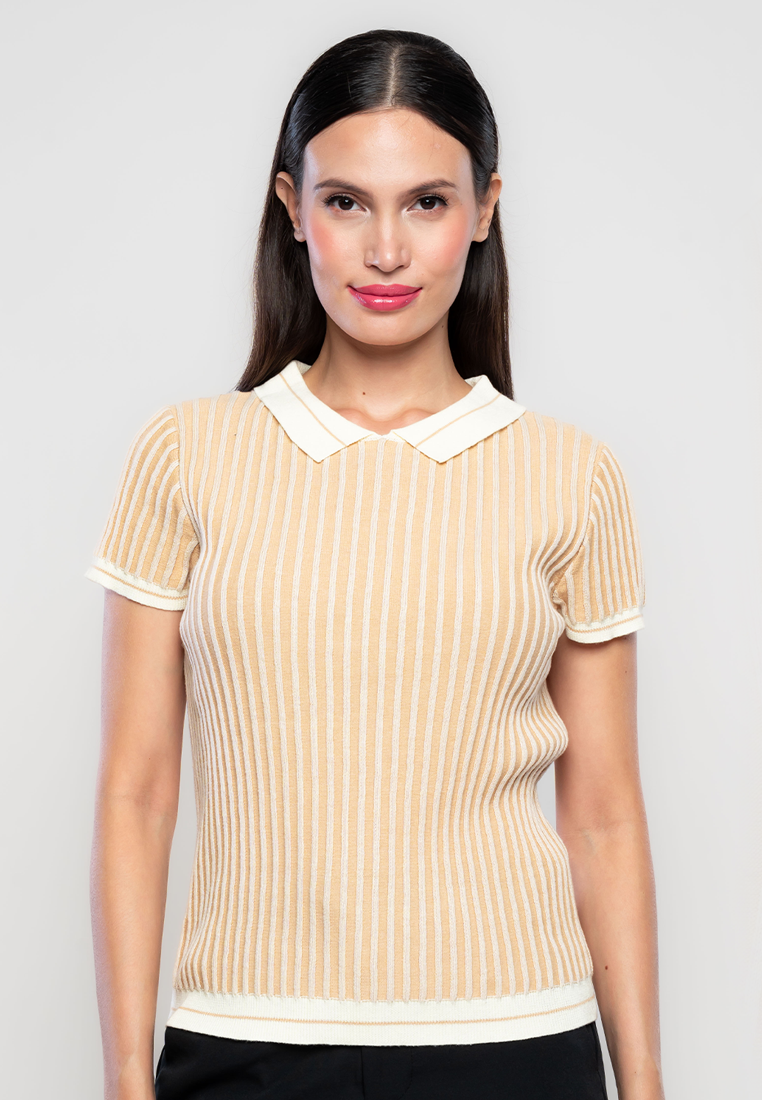 Apple & Eve Camylle Embossed Flat Knit with Contrast Collar