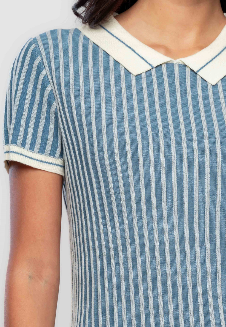 Apple & Eve Camylle Embossed Flat Knit with Contrast Collar