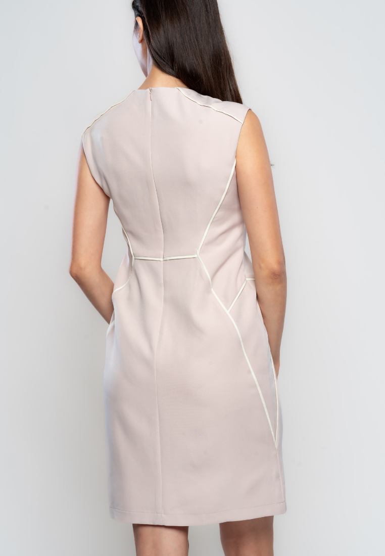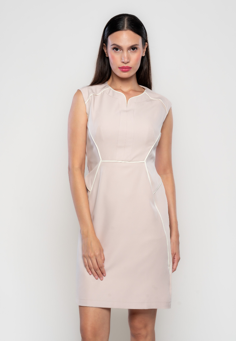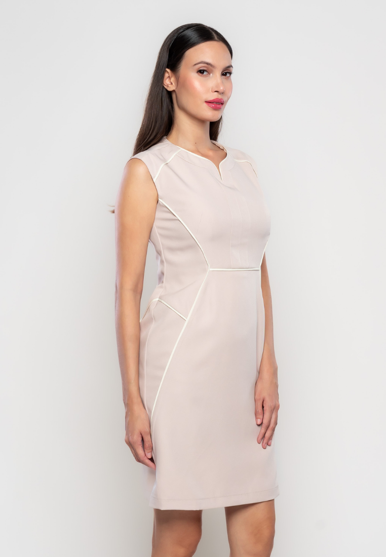 This sleeveless pencil dress is a chic addition to your wardrobe, featuring stylish piping details that elevate its sleek design. Perfect for both work and evening outings, it hugs your curves in all the right places while keeping you comfortable and confident.