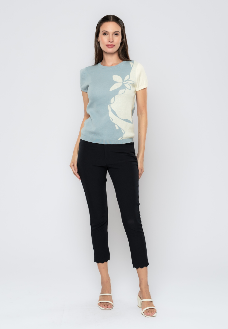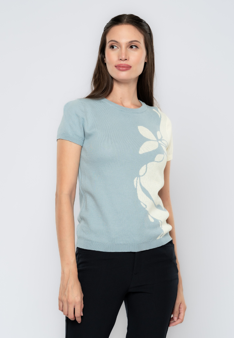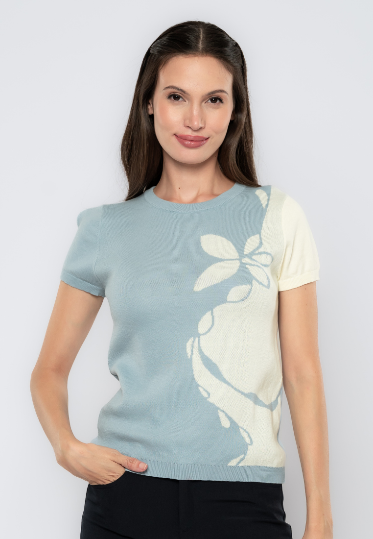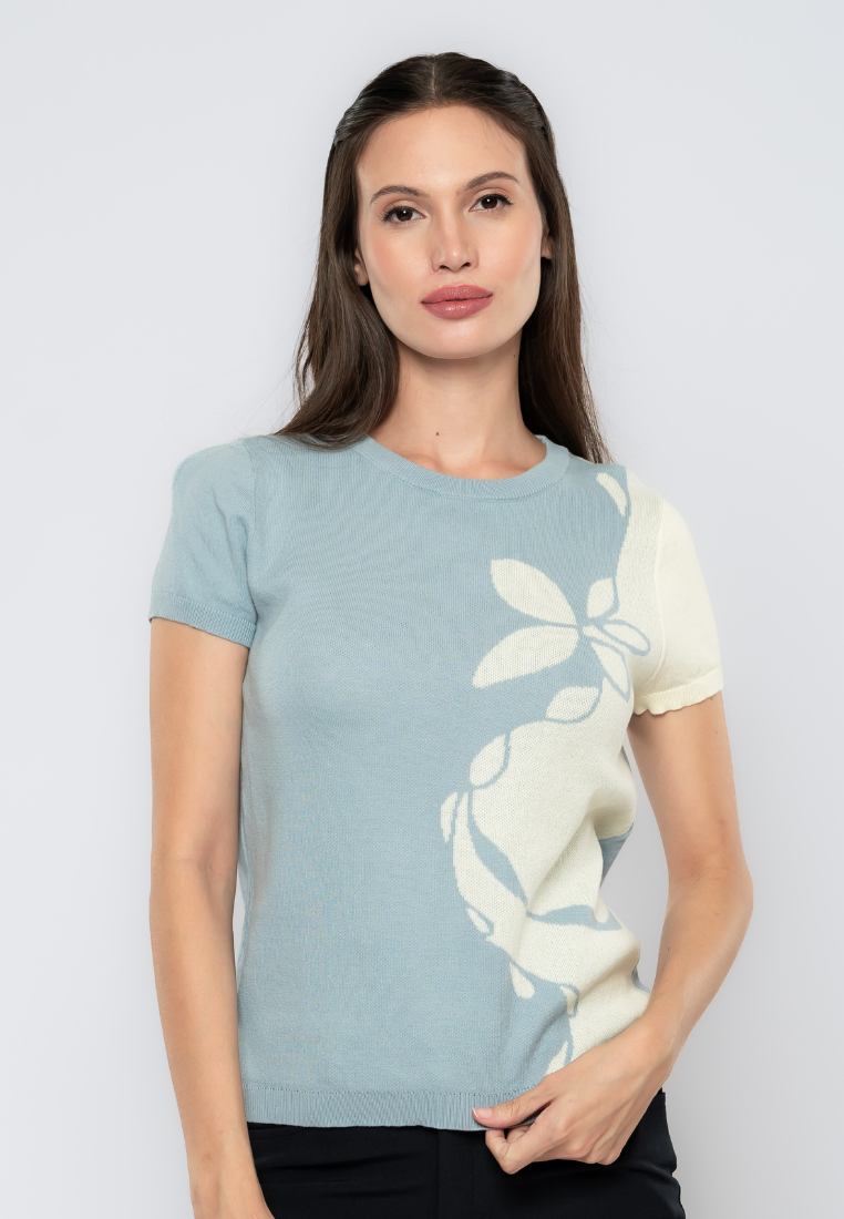 This knitted top features a unique combination of colors that play around the floral pattern, creating a beautiful contrast that will make you stand out.