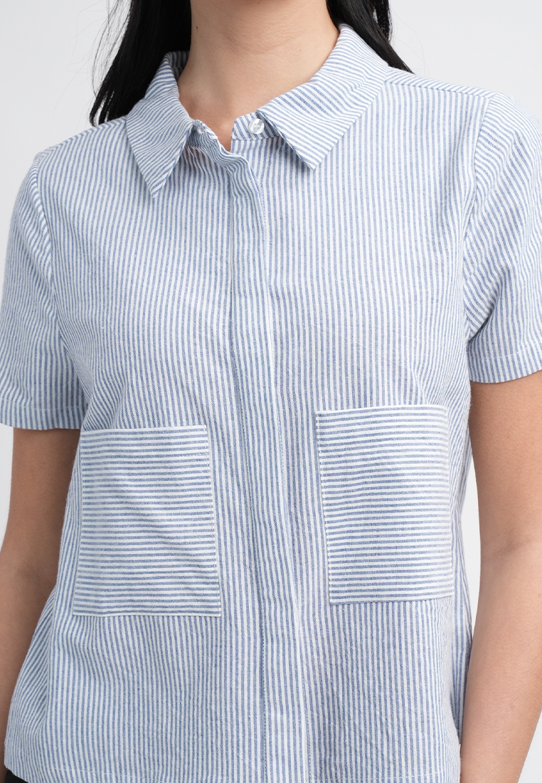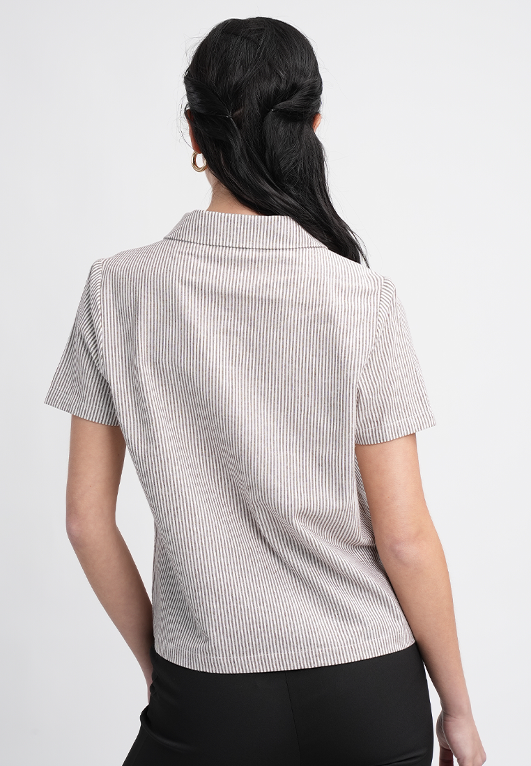Emma Short Sleeve Striped Collared Button-Up Top Blouse