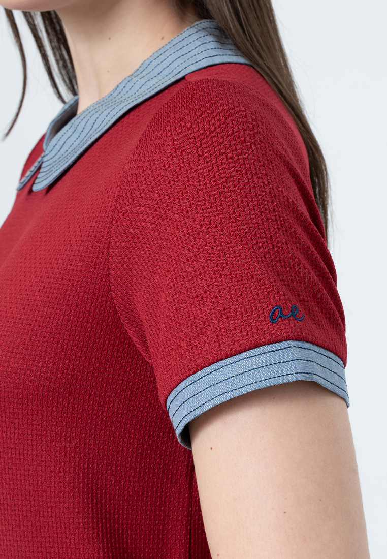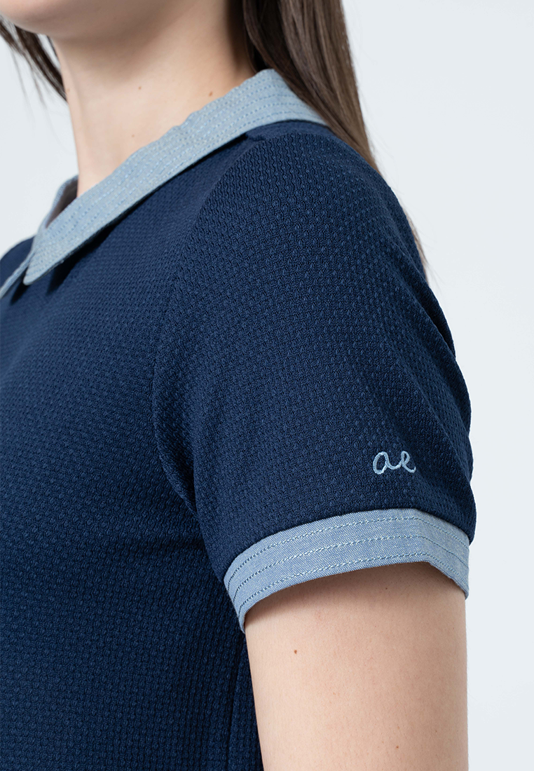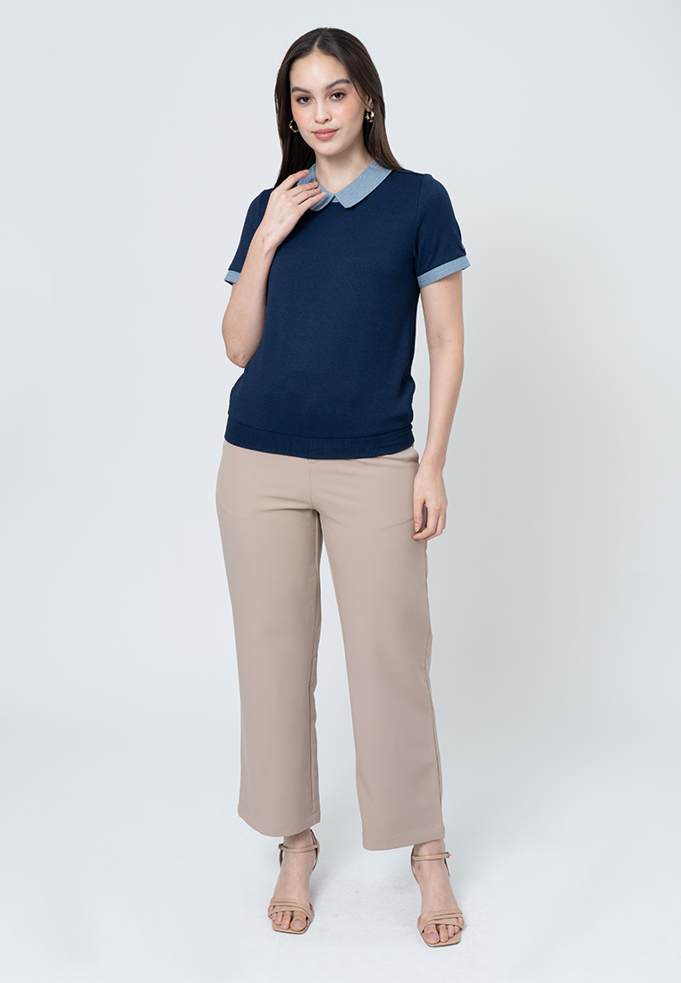 Kambria Knitted Top with Embroidered Collar and Contrast Sleeve Cuffs