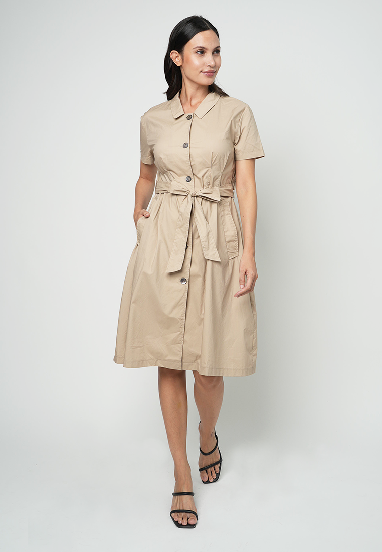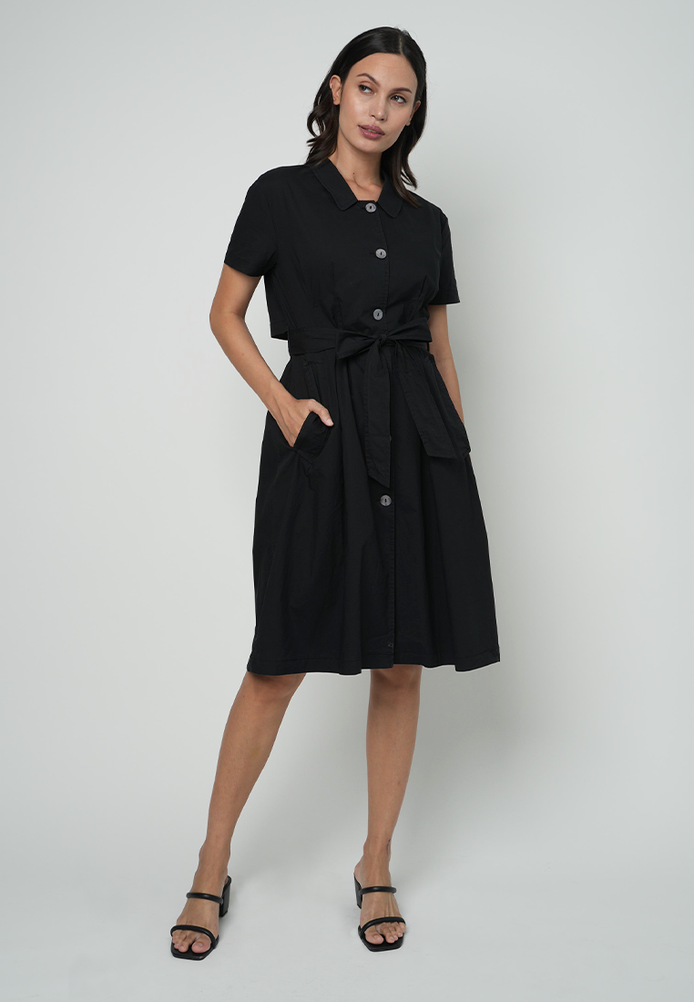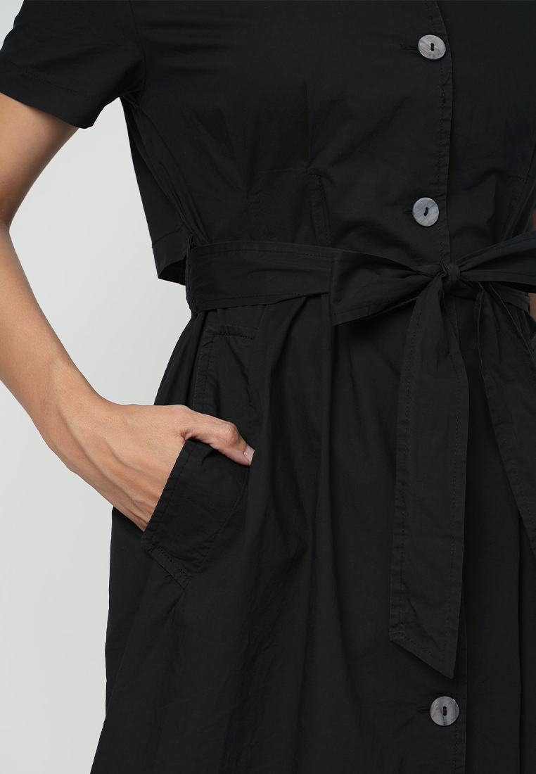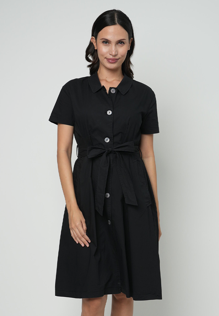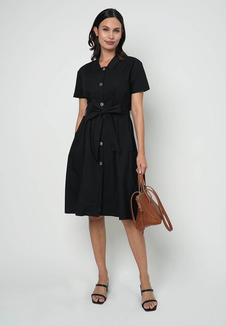 Lauryn Dress with Front Opening Buttons and Fabric Belt