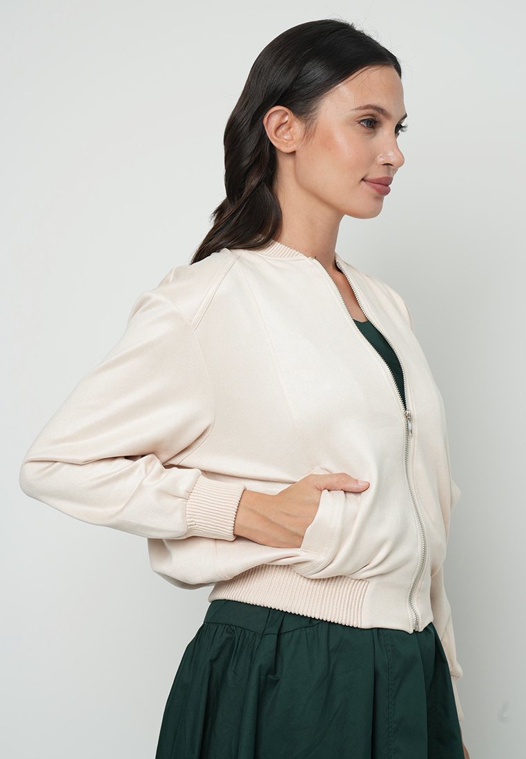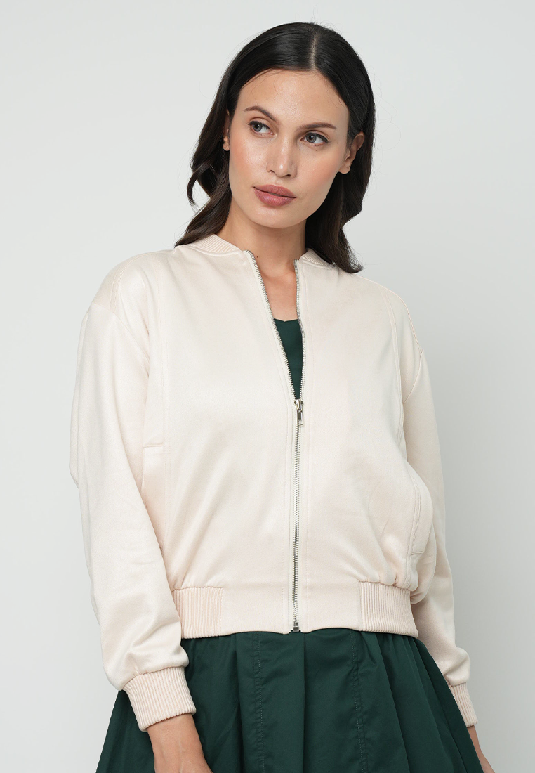 Apple & Eve Maizie Classic Bomber Jacket with Silver hardware Zipper as a Front Opening