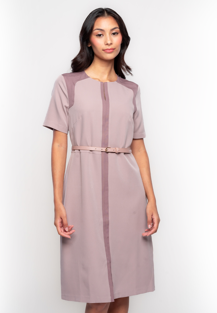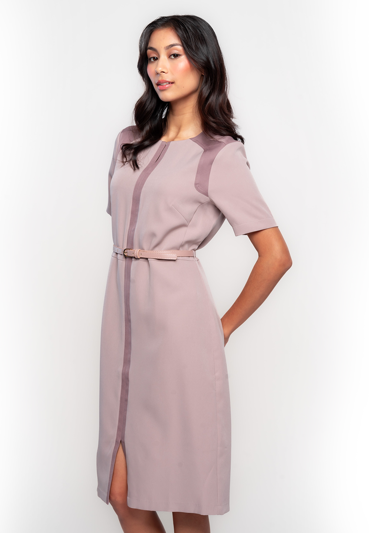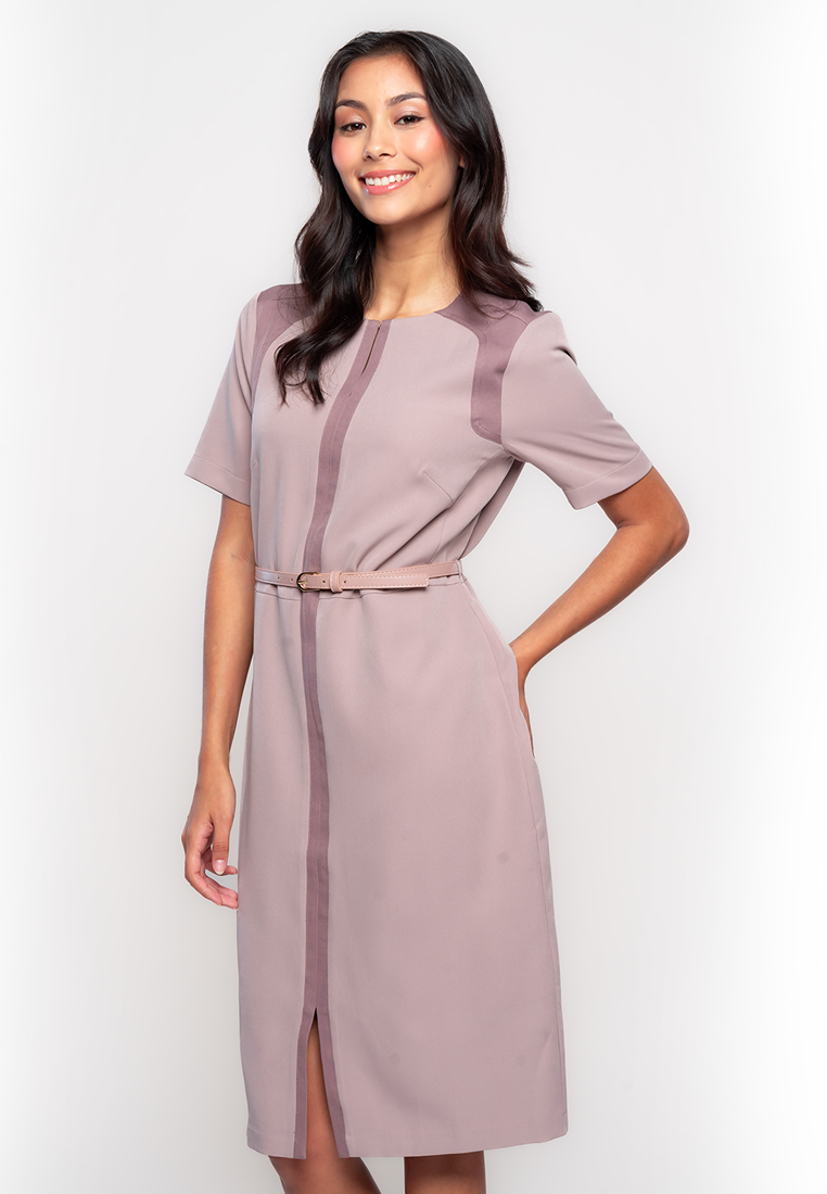 This stunning contrast piping pencil cut midi dress is designed to accentuate your silhouette while offering a touch of elegance. The sleek lines and tailored fit create a sophisticated look, perfect for both professional settings and evening outings. The included belt cinches at the waist, enhancing your figure and adding a stylish detail.