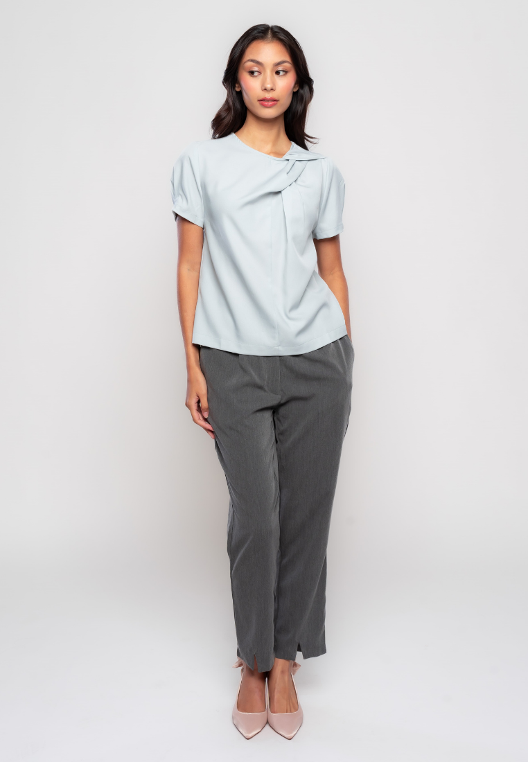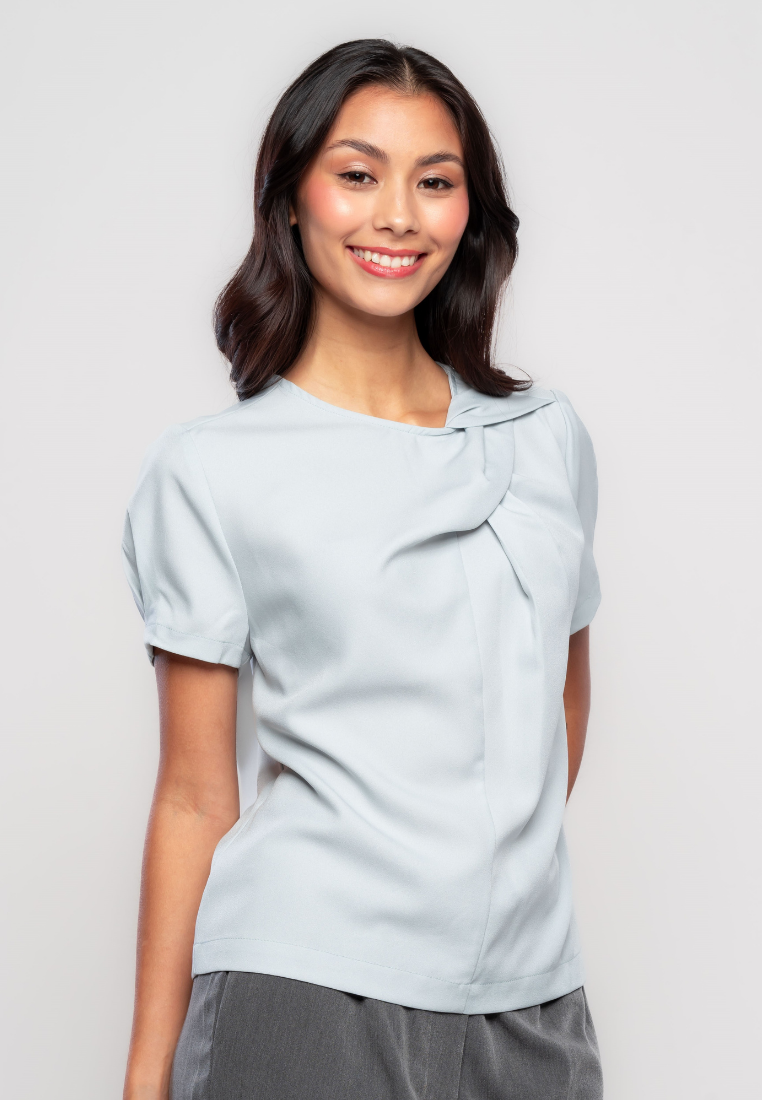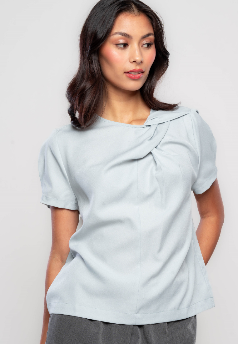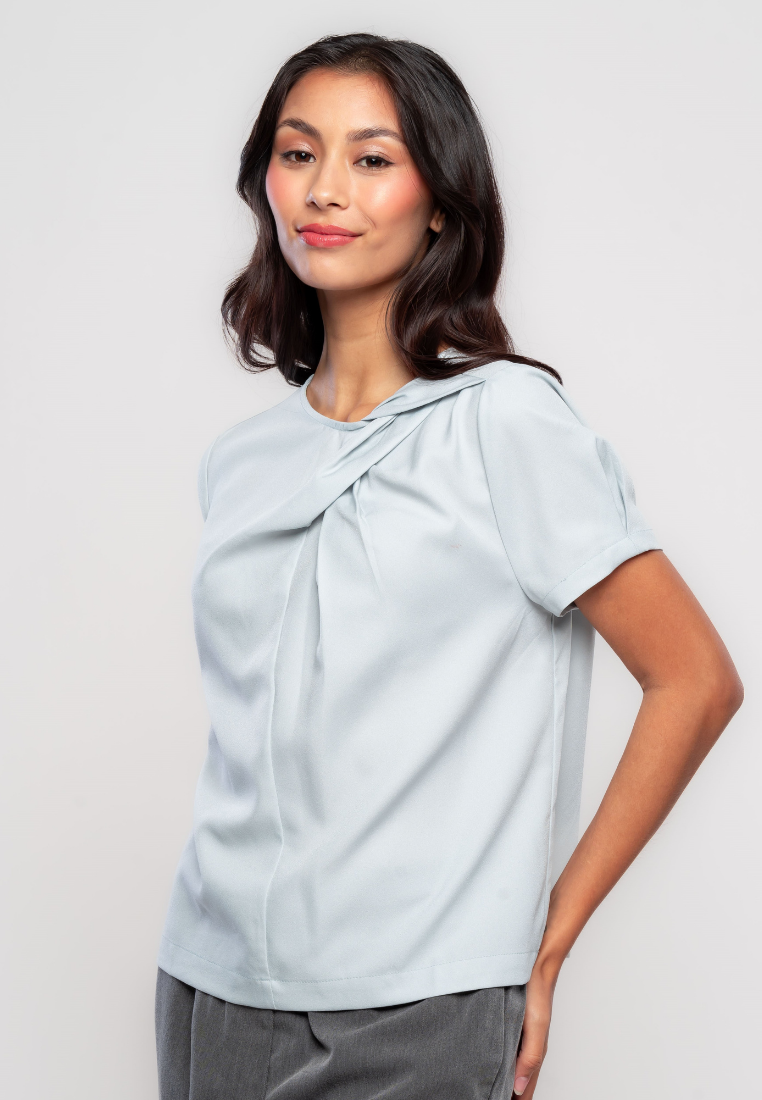 Pierre Gathered Neckline Top with Semi-Puff Sleeves