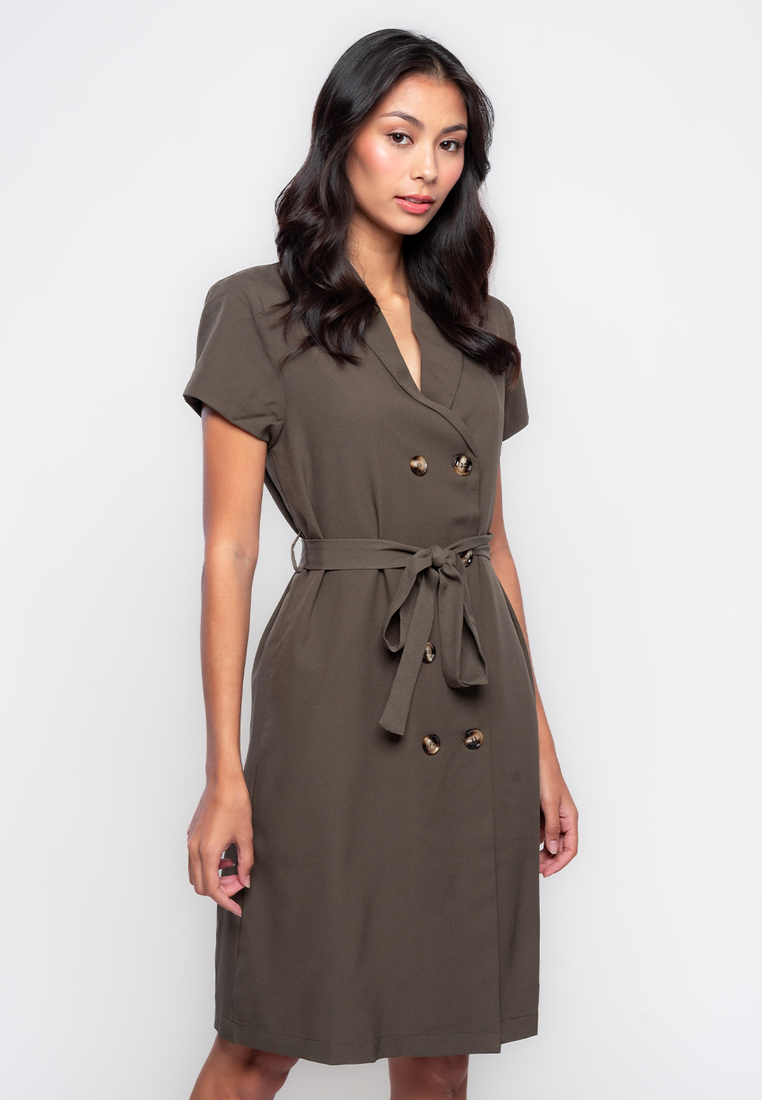 Apple & Eve Roma Double Breasted Dress with Self Tie Belt