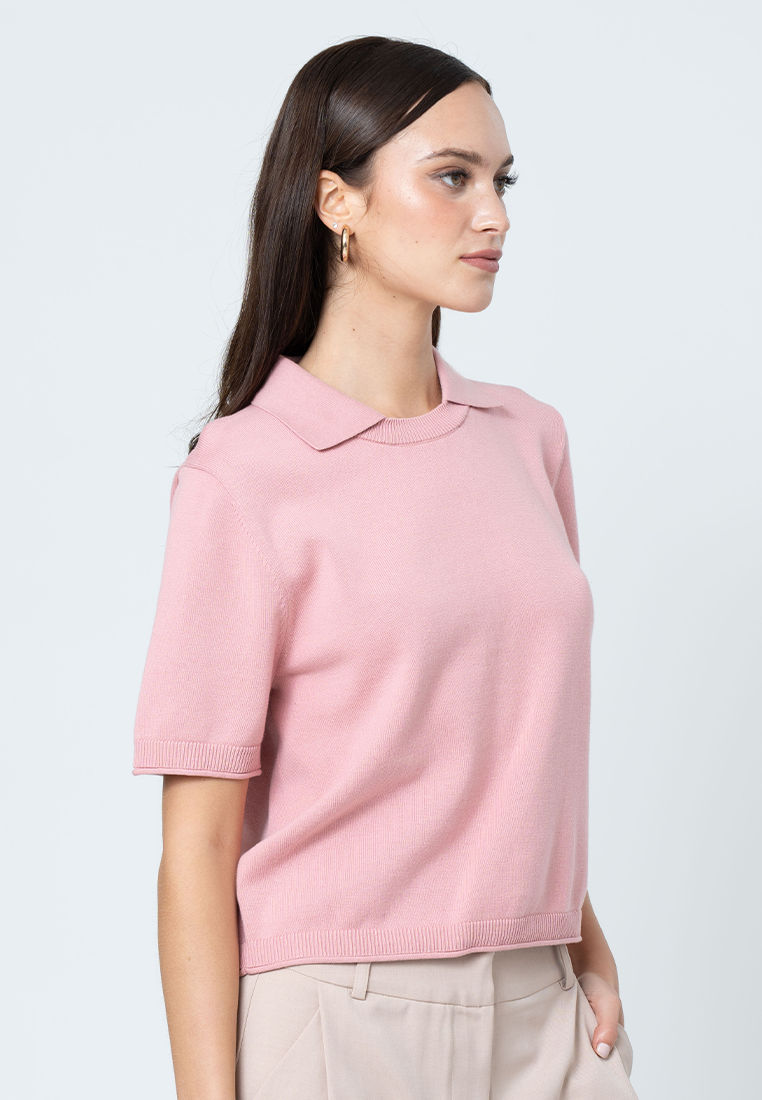 Serving preppy polish with zero effort, this knit top features a built-in layered vest-look collar that does all the styling for you. Crafted from a soft-touch knit with a sleek silhouette, it’s the easiest way to look put together—no actual layering required.