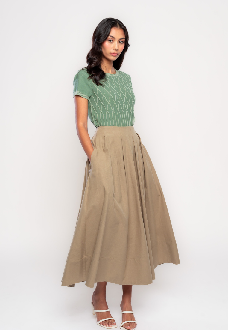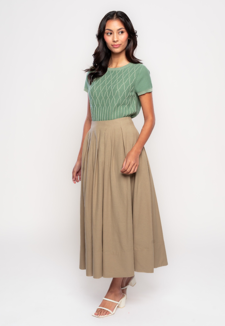 Embrace effortless style and comfort with our A-line circle skirt, designed to keep you feeling fresh and free all day long. Crafted from breathable fabric, this skirt flows beautifully with every movement, its flattering silhouette enhances your figure while providing the ultimate ease, ensuring you look and feel your best.