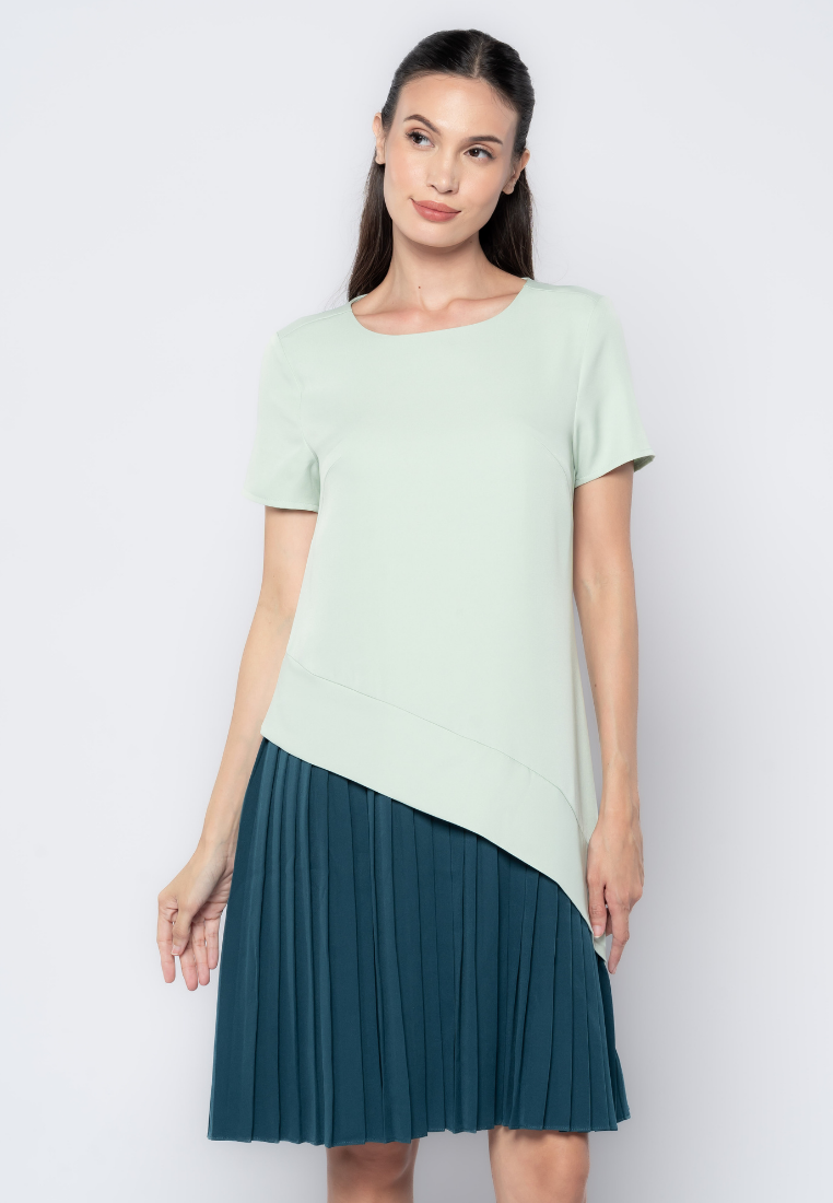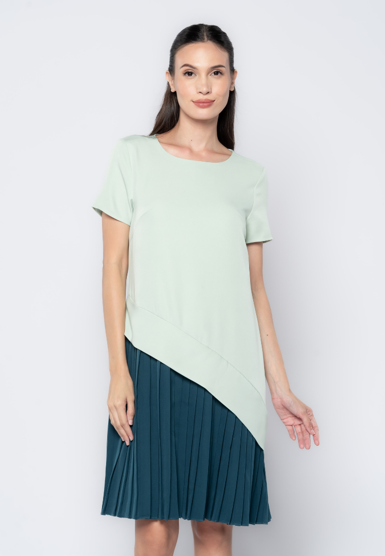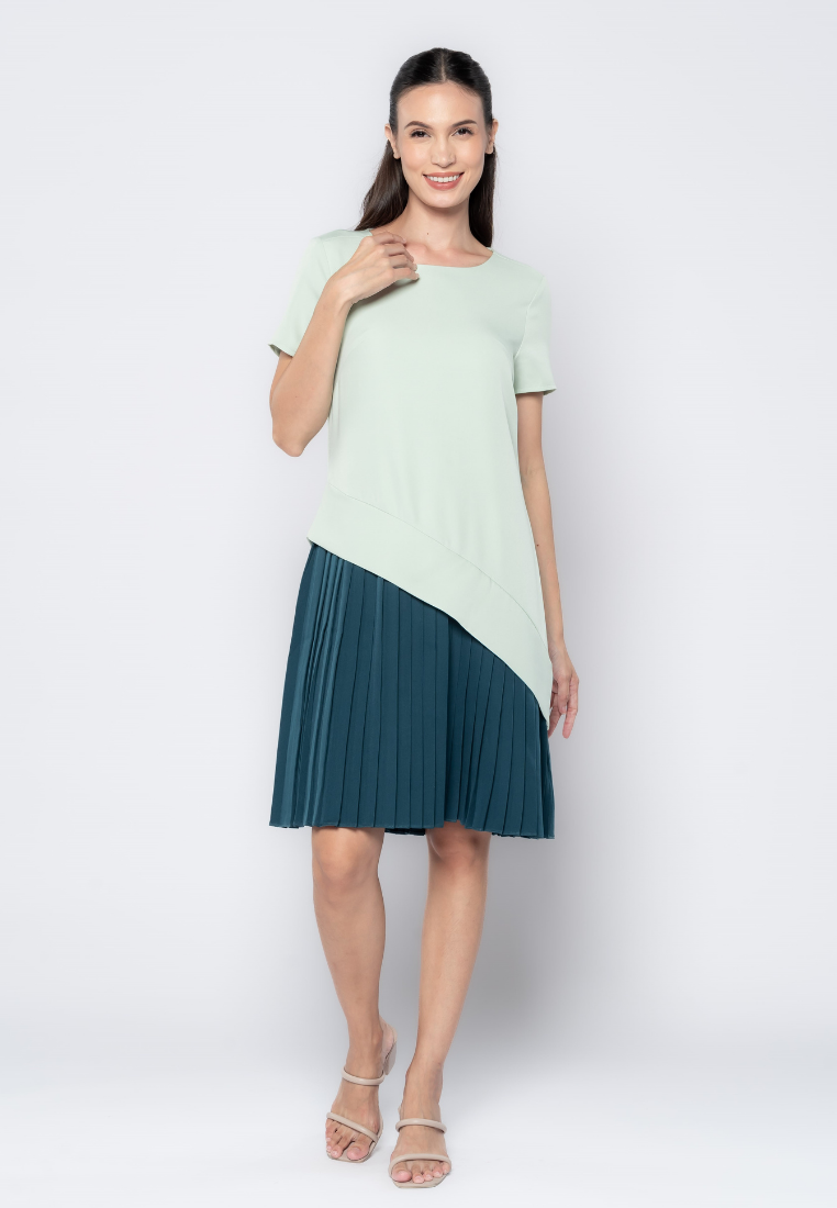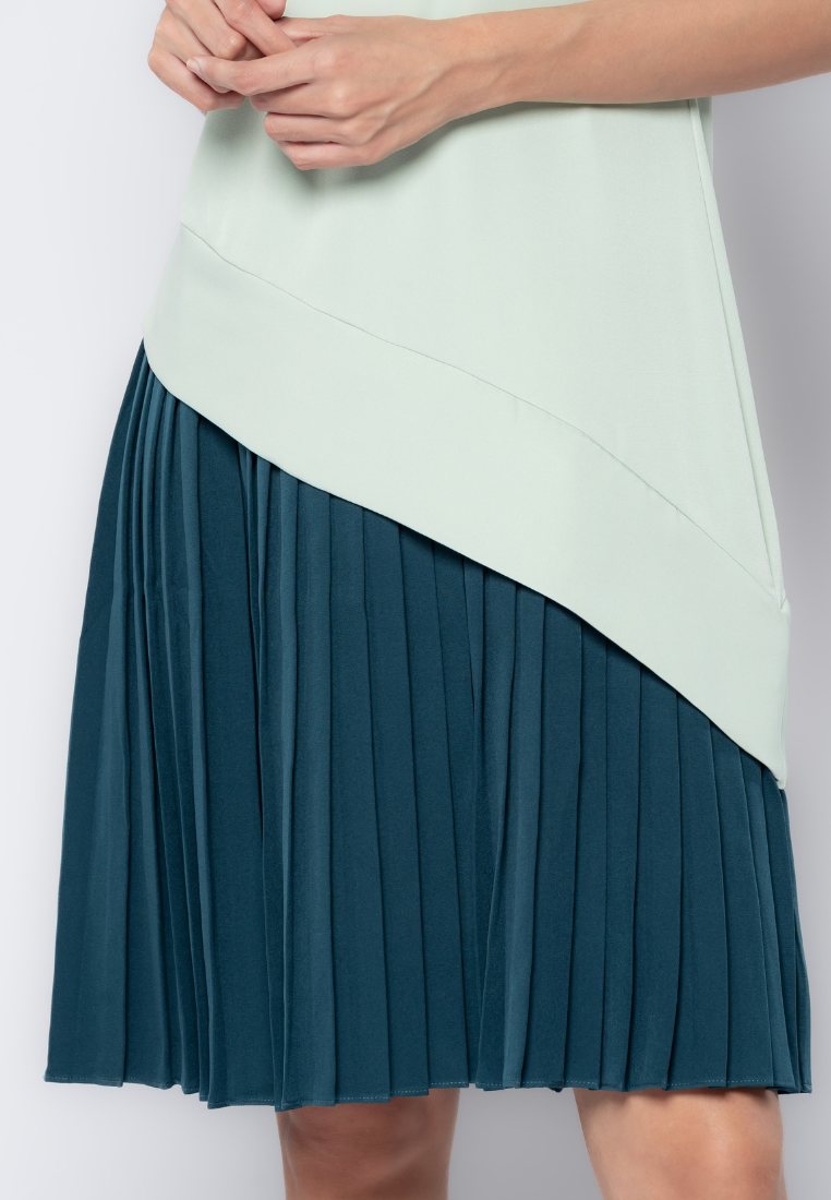 Two Tone Pleated Skirt Dress