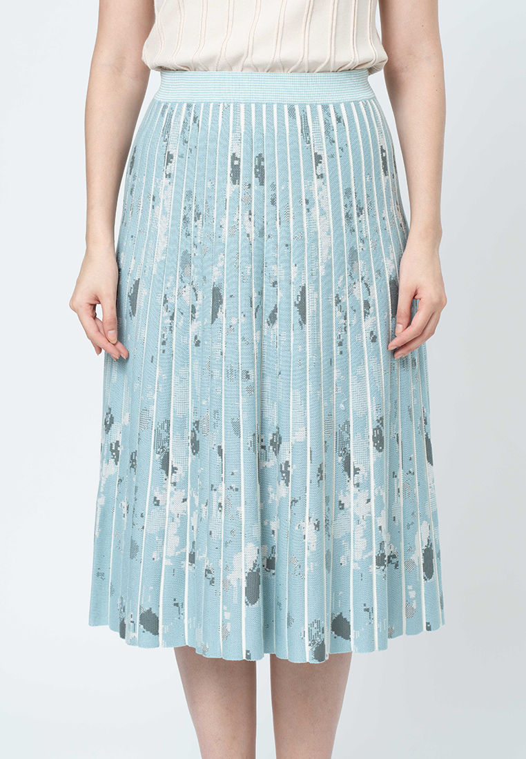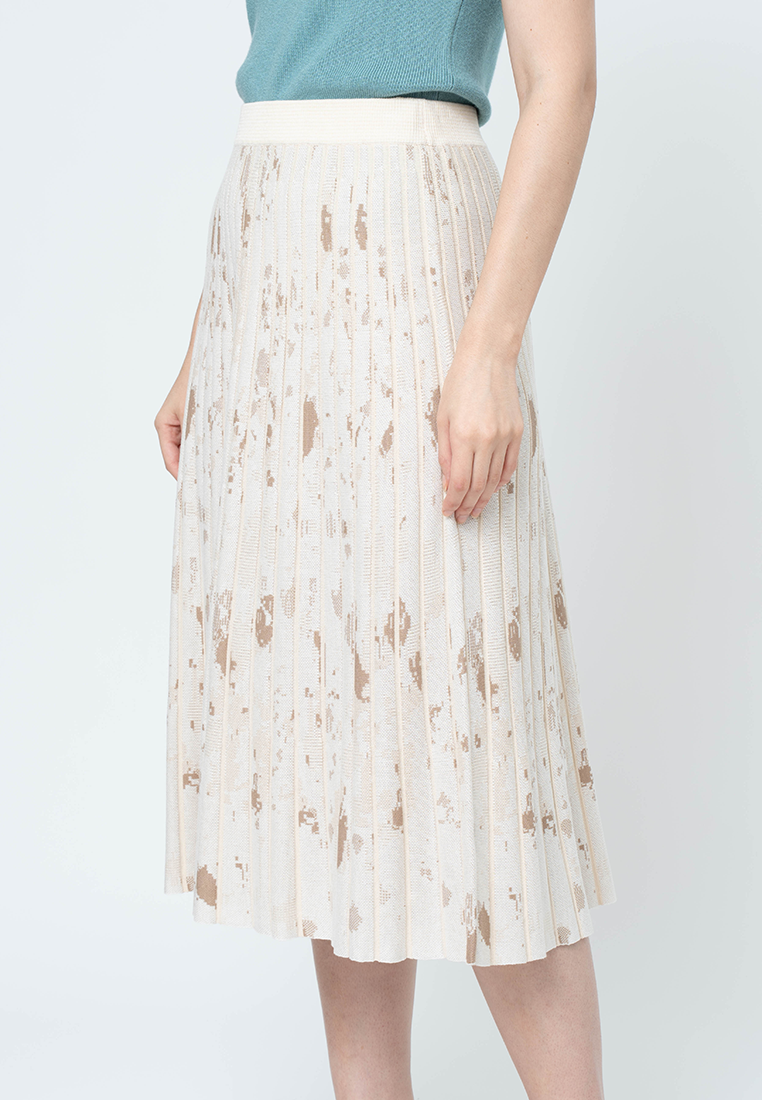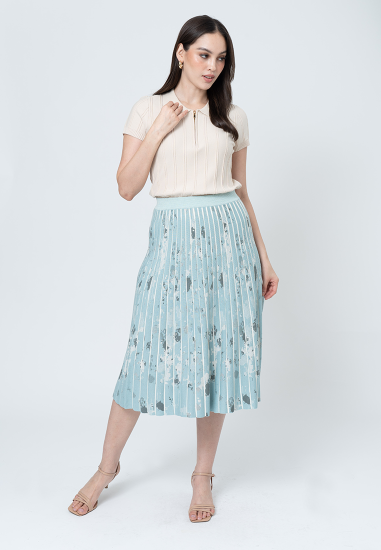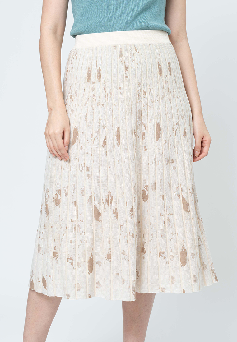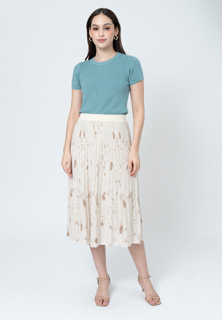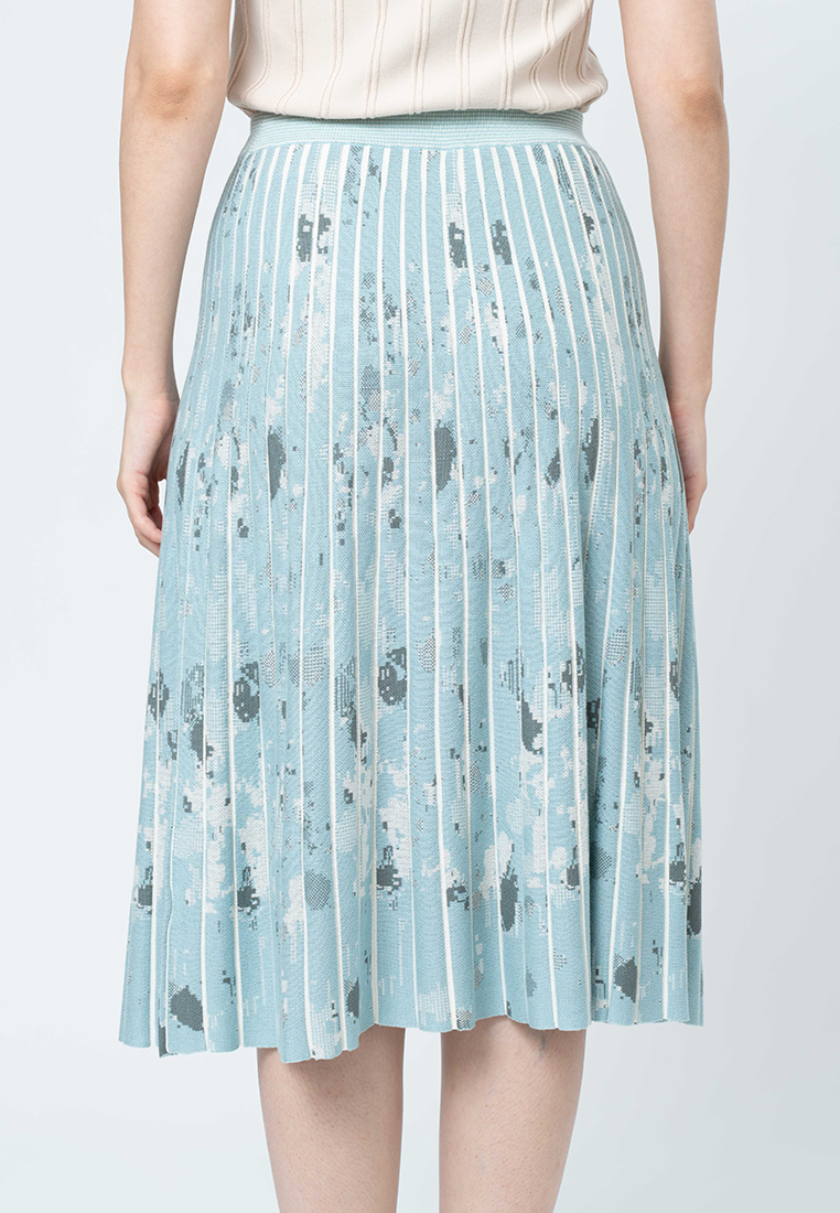 Veda Pleated Knit A-Line Skirt with Elastic Waistband