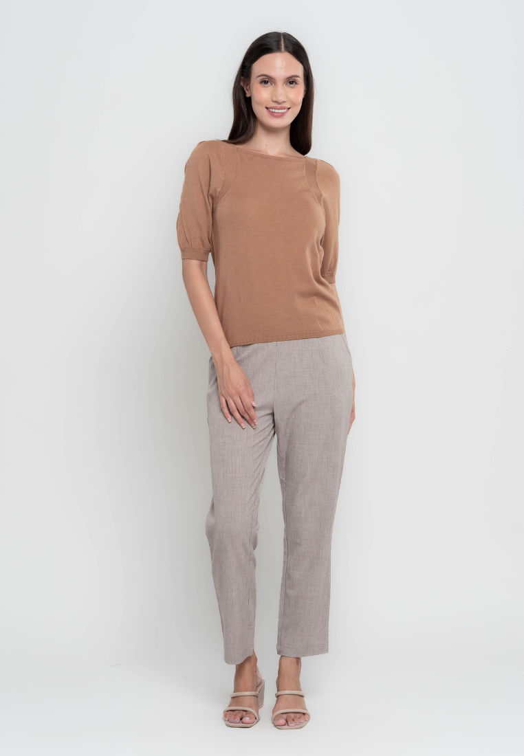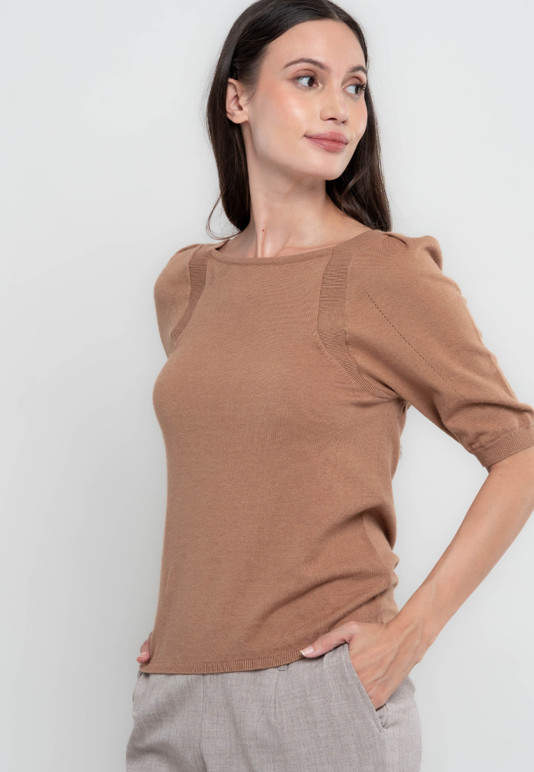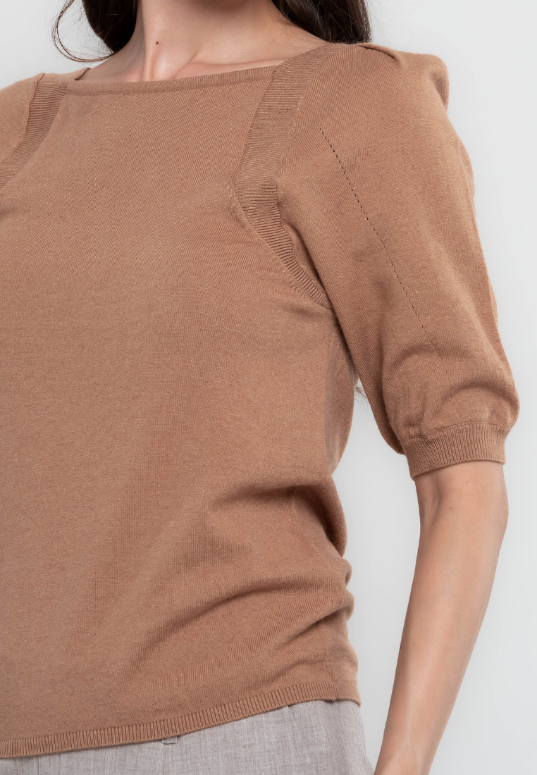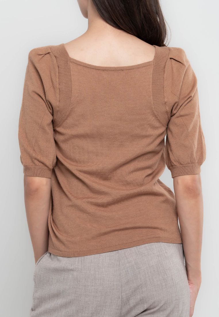 Viola Square Neckline Puff Sleeves Flat knit Top
