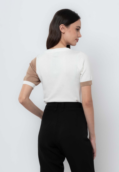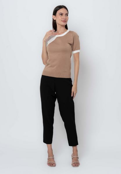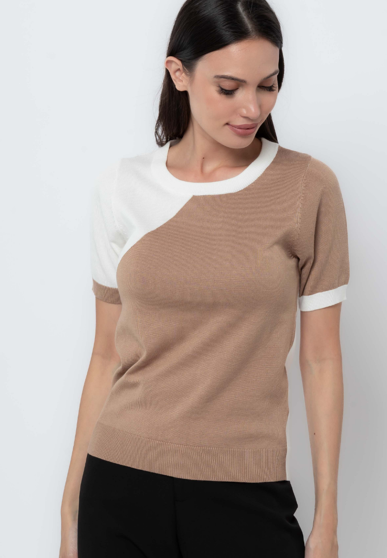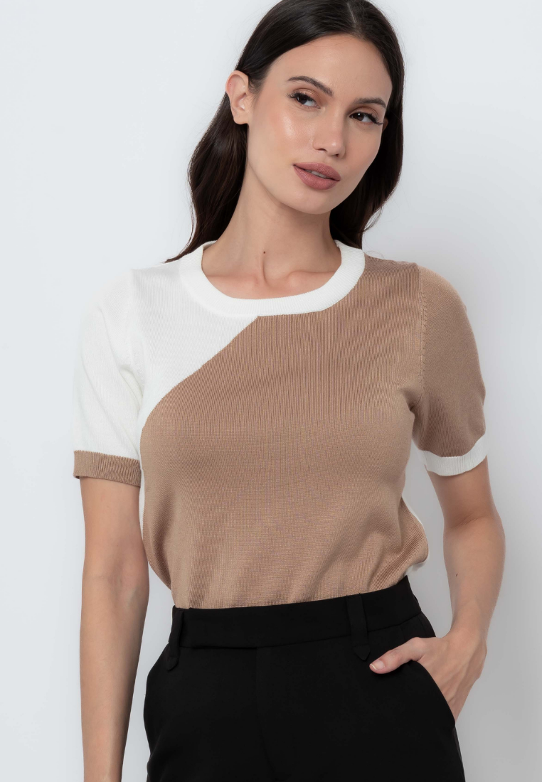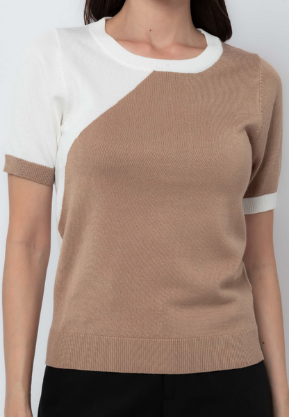 Apple & Eve Asymmetric Two - tone Flatknit Top