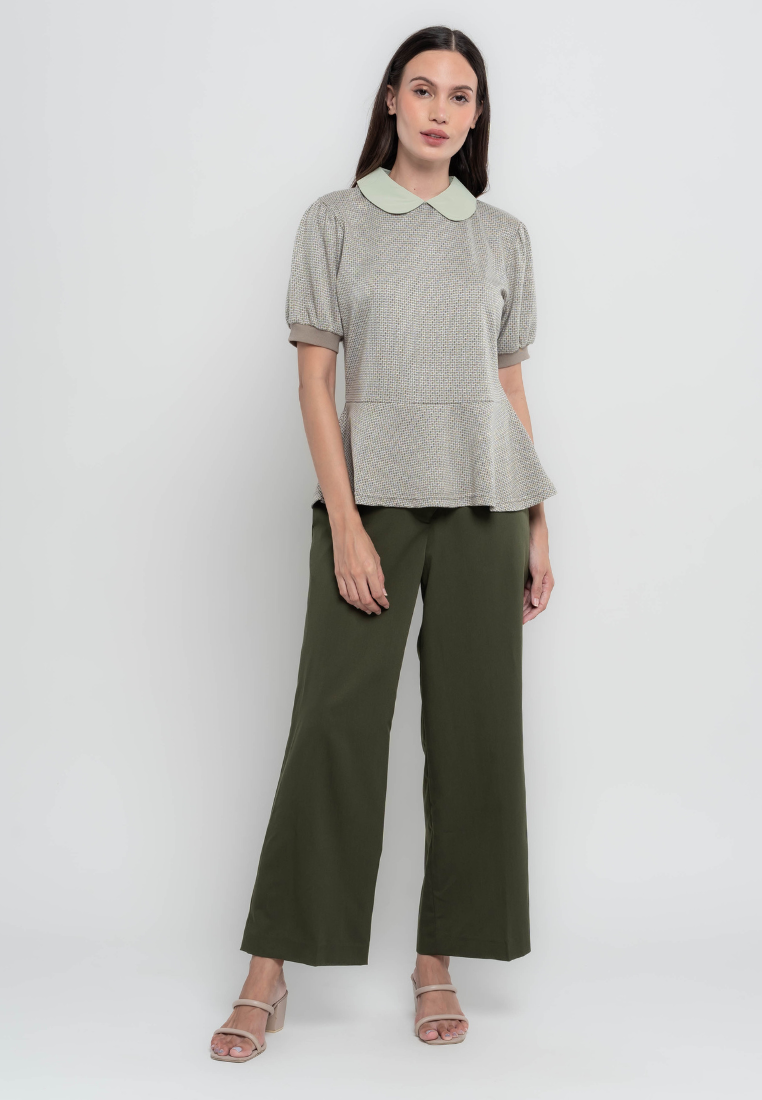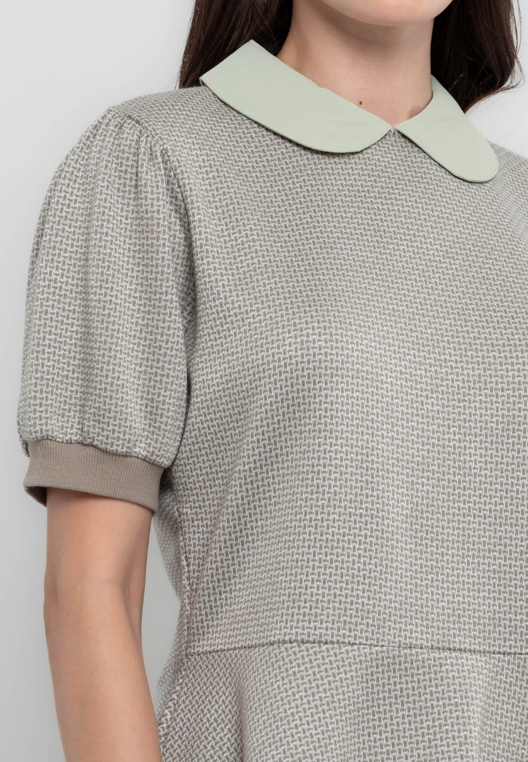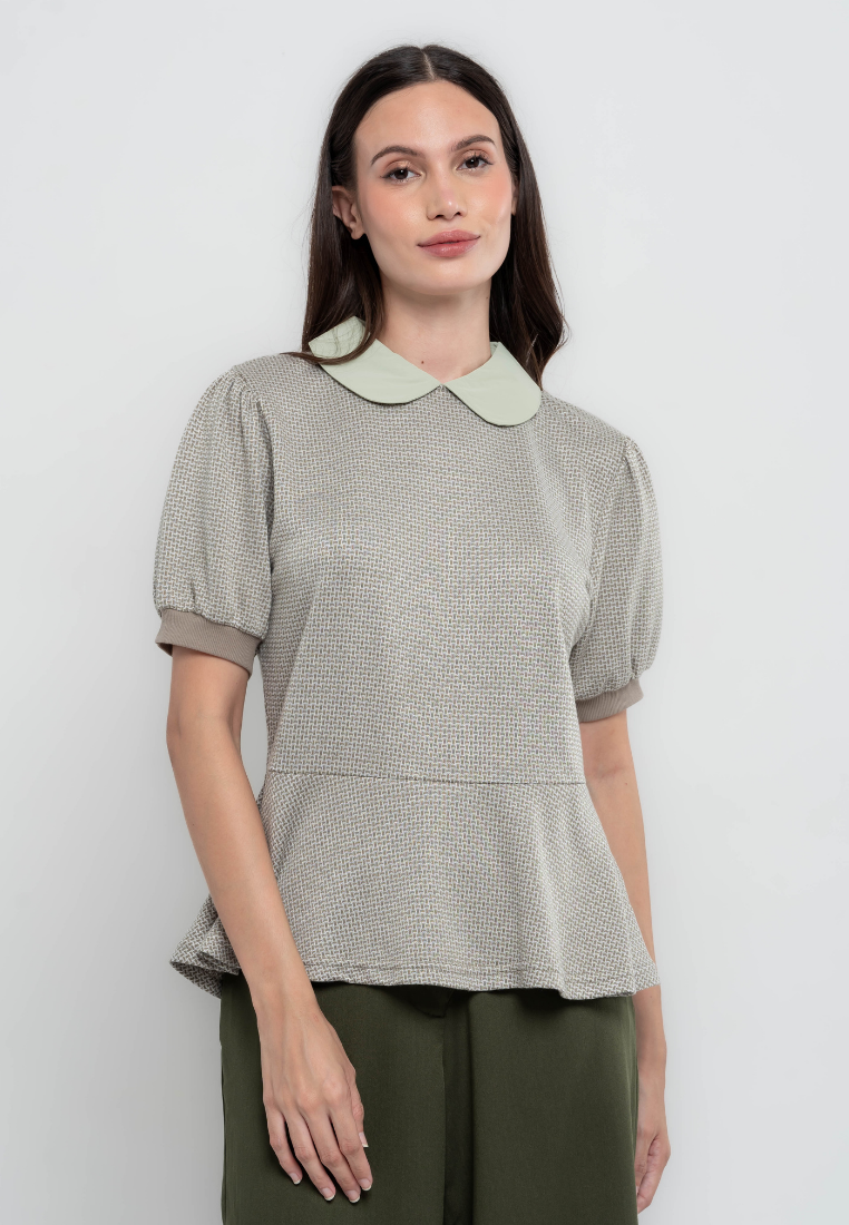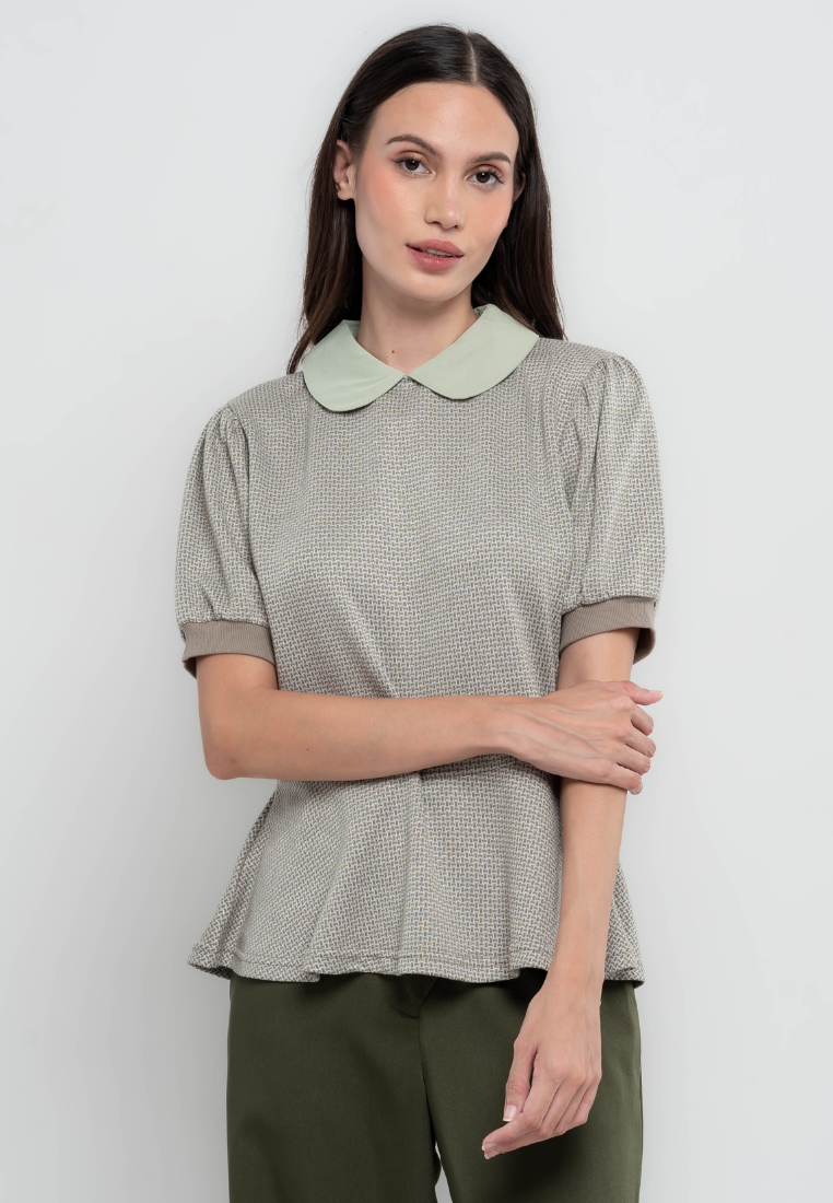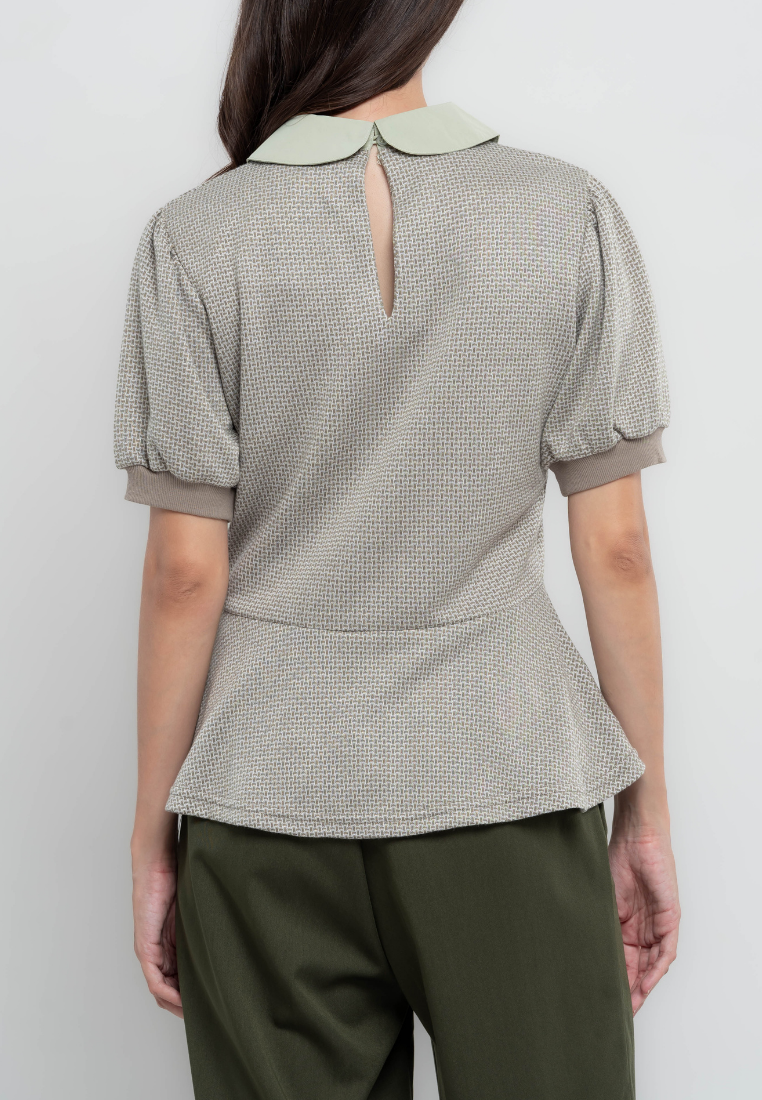 Marie Geometric Patterned Peplum Collared T-Shirt Blouse